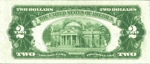 Портрет Томаса Джефферсона, на оборотной стороне - вилла Джефферсона Монтичелло, выстроенная по его собственному проекту.