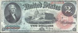 В 1886 году были выпущены первые серебряные сертификаты номиналом в 2 $ с портретом Генерала Гражданской войны Винфилда Скотта Ханкока. Предполагалось, что каждая банкнота в 2 $ реальным серебрянным эквивалентом, который обладатель банкноты может получить, обратившись в банк. Этим объясняется надпись "Two silver Dollar" на лицевой стороне банкноты.