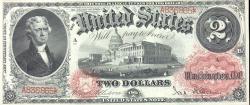Первая серия двухдолларовых банкнот США, существующая в разных дизайнах до настоящего времени, была выпущена в августе 1862. Эта серия, как и последующие, представленные в этом разделе, отличается от существующих в настоящее время, несколько большими размерами. Этот тип банкнот - United States Notes - часто называют Legal Tender Notes, поскольку именно так написано на самой банкноте. На лицевой стороне расположен портрет Александра Гамилтона в профиль, который отличается от портрета, используемого в настоящее время для банкнот в 10 $ .