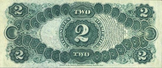 Портрет - Томас Джеферсон, на обороте - сложная виньетка, напечатанная зеленой краской.