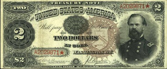 Портрет - генерал Джеймс Макферсон, на обороте - сложная виньетка, напечатанная зеленой краской.