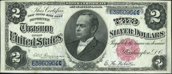 Серия 1891 года (маленькая красная печать справа, синий номер серии, портрет Уильяма Виндома), Silver CertificatesВсего напечатано: 6.148.000