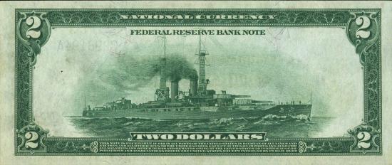 << Серия 1918 годаFederal Reserve Bank Notes (боны федеральных резервных банков)Серия 1918 года, ФиладельфияПортрет Томаса Джефферсона, на обороте - изображение корабля. KL#152, FR#753
