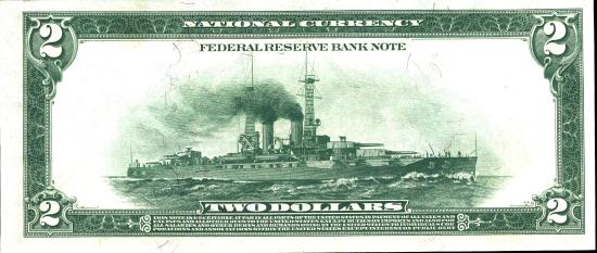 << Серия 1918 годаFederal Reserve Bank Notes (боны федеральных резервных банков)Серия 1918 года, ФиладельфияПортрет Томаса Джефферсона, на обороте - изображение корабля. KL#153, FR#754