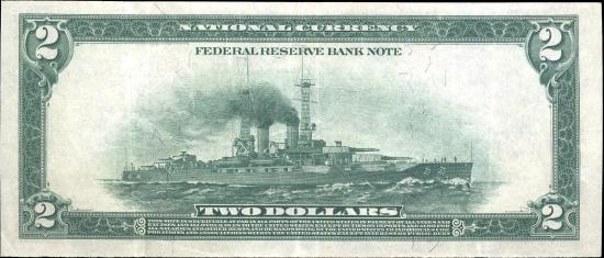 << Серия 1918 годаFederal Reserve Bank Notes (боны федеральных резервных банков)Серия 1918 года, ФиладельфияПортрет Томаса Джефферсона, на обороте - изображение корабля. KL#154, FR#755