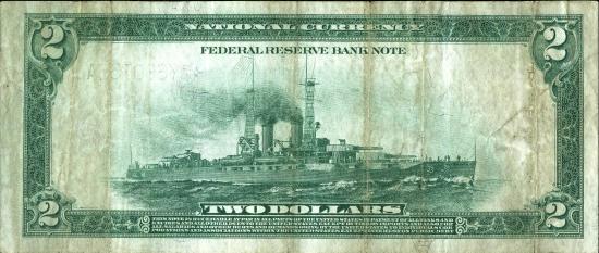 << Серия 1918 годаFederal Reserve Bank Notes (боны федеральных резервных банков)Серия 1918 года, ФиладельфияПортрет Томаса Джефферсона, на обороте - изображение корабля. KL#155, FR#756