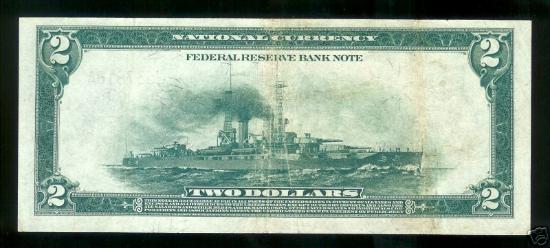 << Серия 1918 годаFederal Reserve Bank Notes (боны федеральных резервных банков)Серия 1918 года, Канзас СитиПортрет Томаса Джефферсона, на обороте - изображение корабля. KL#173, FR#774