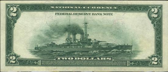 << Серия 1918 годаFederal Reserve Bank Notes (боны федеральных резервных банков)Серия 1918 года, ДалласПортрет Томаса Джефферсона, на обороте - изображение корабля. KL#176, FR#777