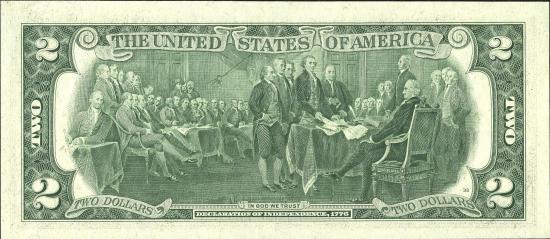 Легендарная банкнота США - Банкнота $2 1976 г. юбилейной серии G, зеленая печать, подписи Neff-Simon, замещенный номер