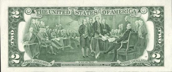 << серия 1995 г.Банкнота $2 1995 г., ремейк юбилейной серии, G - Чикаго, подписи Wilthrow-Rubin. Замещенный "звездный" номер. Печатались только для коллекционеров и не выпускались в оборот.Напечатано всего 9.999 экземпляров. Портрет - Томас Джефферсон, на обороте - подписание Декларации независимости 1776 г.